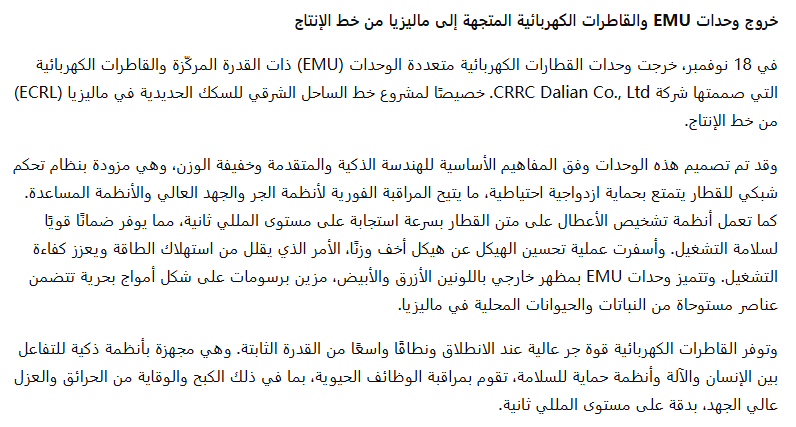 خروج وحدات EMU والقاطرات الكهربائية المتجهة إلى ماليزيا من خط الإنتاج