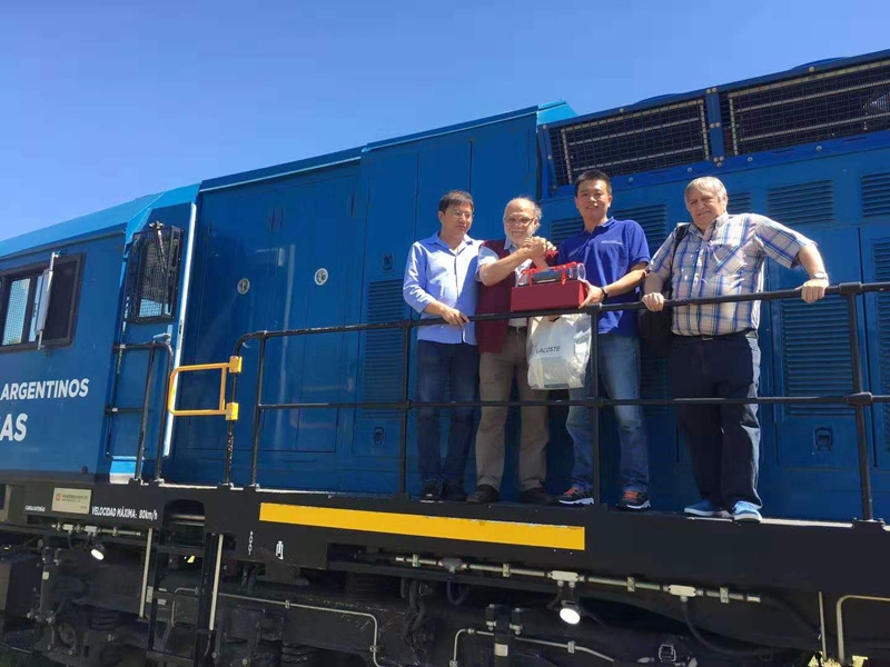 当地时间11月27日,戚墅堰公司国际贸易中心商务经理孙玉郎和服务组技师周晓俊陪同研究院总裁巴布洛和铁路专家阿里桑达罗搭乘公司供阿根廷SOFSE公司的城际客运机车,前往贝尔格拉诺公司的车辆编组站,实地了解CDD5A1机车。