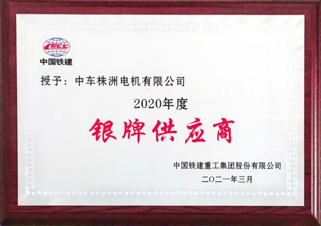 近日,在铁建重工举行的供应商年度评选活动中,中车株洲电机公司在1000余家供应商中脱颖而出,获评2020年度“银牌供应商”称号,是唯一一家入选的电机类供应商。