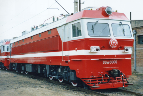 SS6B electric locomotive is a 6-axle transmission phase-control electric locomotive applied for the main lines. It is designed and manufactured on the basis of mature technology of SS4 and SS6 locomotives in the principle of simplification, standardization and serialization. It takes single-phase power frequency with the voltage 25kV. Being made up of two 3-axle bogie and Co-Co as its axle arrangement, it has double driver’s cab with large covers. Multi-locomotives could serve as the heavy-haul freight locomotive for traction. The highest running speed is 100km/h.