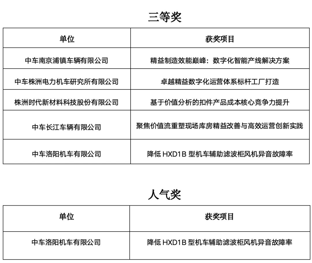 This year’s competition drew nearly 400 companies, with 1,041 submissions across 40+ industries, making it one of the broadest national platforms for innovation, with strong participation from leading anchor enterprises and multi-level teams. CRRC’s results highlight the company’s solid progress in lean management and digital innovation.