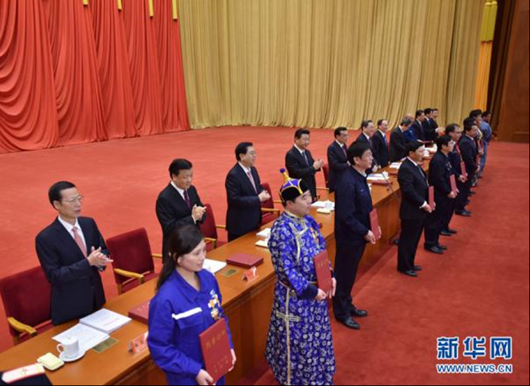 2015年庆祝 “五一”国际劳动节暨表彰全国劳动模范和先进工作者大会4月28日在北京人民大会堂隆重举行。中共中央总书记、国家主席、中央军委主席习近平在会上发表重要讲话,国务院总理李克强主持大会,党和国家领导人张德江、俞正声、王岐山、张高丽出席,中共中央政治局常委刘云山宣读表彰决定。