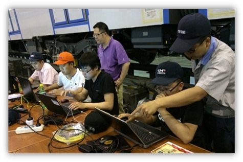 “高大上”的欧洲地铁市场、唐车公司紧凑的工期组织和高创新度的产品技术配置赋予了该项目前所未有的压力和挑战。在前期的设计研制阶段,大连电牵公司产品研制 团队克服了电气设备预留空间窄、功率密度等级要求高、地面试验验证时间短等一系列难题,在约定时间内顺利交付首批产品。5月17日,公司接到业主加快首列 动态调试的紧急配合通知,公司领导授意项目经理,组织网络控制部、变流技术部、实验中心、客户服务部等部门骨干力量作为服务团队,即刻集结出发。在从大连 到唐山的八小时车程中,该团队对调试组织方案进行了充分策划和推演,18日凌晨1时到达唐车公司调试现场后,整车调试迅即展开。之后的半个月内,服务团队 分班轮流作业,确保现场调试24小时不间断,不断克服各项难题、快速推进调试组织。据统计,团队中每人每天工作时间都在16个小时左右,实现了一天内完成 从初调到成功动车、10天完成全部细节调整实现首列车最高速度运行等,刷新了新车调试的最快记录,首列车于6月1日正式解编。首列车发往北京铁科院后,大 连电牵公司的服务团队还将继续为后续型式试验保驾护航。