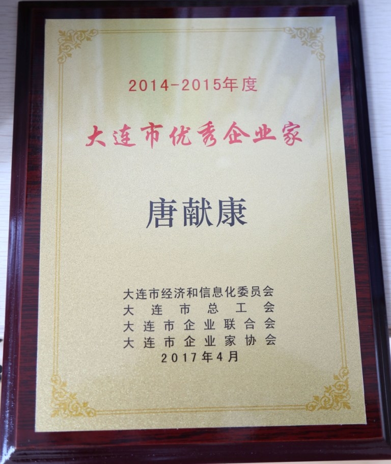 4月25日上午,由大连市经济和信息化委员会、大连市总工会、大连市企业联合会以及大连市企业家协会联合举办的大连市优秀企业家表彰大会在大连棒棰岛宾馆隆重召开,大连电牵公司董事长唐献康荣获“2014-2015年度大连市优秀企业家” 称号,并作为优秀企业家代表上台领奖。大连市副市长刘岩出席会议并讲话,还亲自为唐献康董事长颁奖。