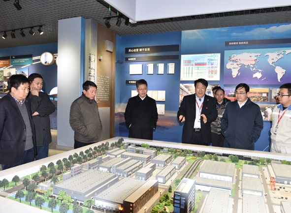 张旭一行兴致勃勃地参观了公司形象展厅,听取了公司历史文化的介绍,并就公司发展基本情况与赵维宗、陈伟京进行了交流。