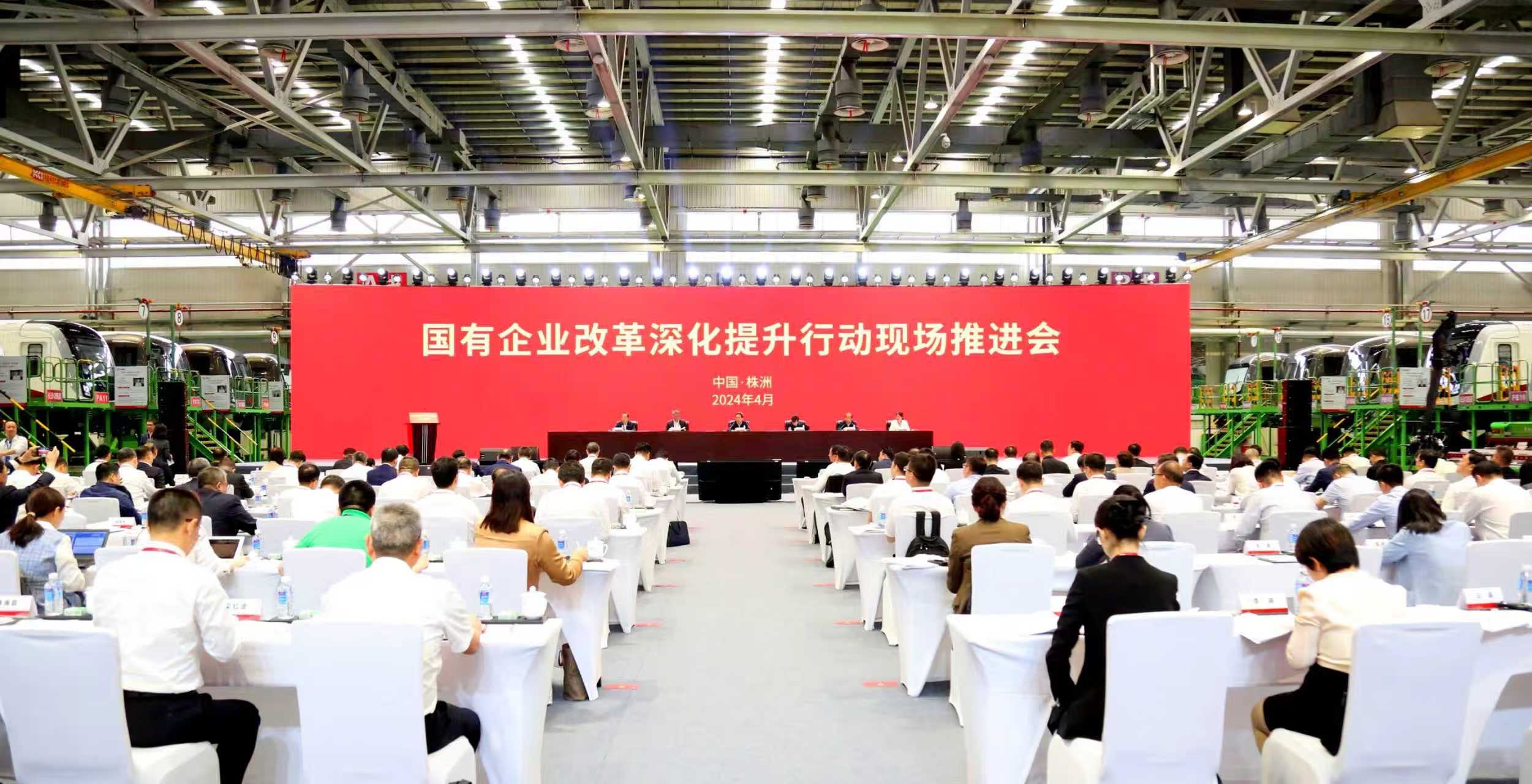 2024年春天,由中国中车集团承办的国务院国资委国有企业改革深化提升行动现场推进会在中车株机城轨总成组装厂房召开,2.5万人线上线下参会。