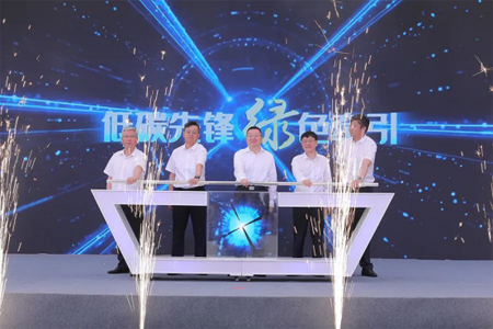 Tie Libin, Yuan Fang, Fu Chengjun, Chen Zhixin and Li Feng pushed the handle of holographic push-rod launcher together. With gorgeous fireworks, the HXN6 hybrid locomotive with red ribbons slowly drove out with the horn sounding, becoming the most eye-catching star of the venue.
