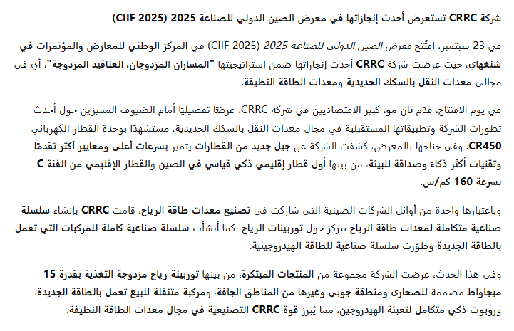 شركة CRRC تستعرض أحدث إنجازاتها في معرض الصين الدولي للصناعة 2025 (CIIF 2025)