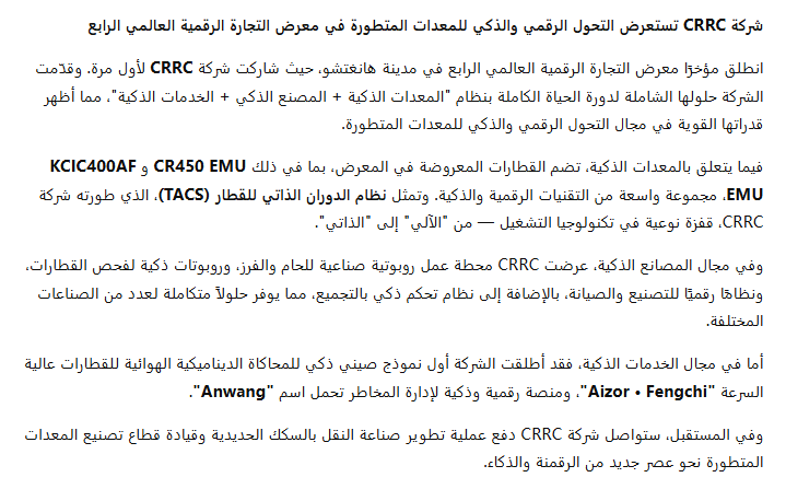 شركة CRRC تستعرض التحول الرقمي والذكي للمعدات المتطورة في معرض التجارة الرقمية العالمي الرابع