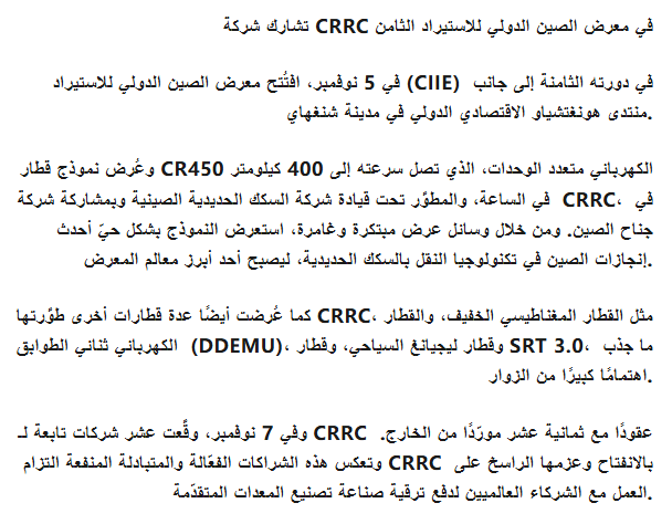 تشارك شركة CRRC في معرض الصين الدولي للاستيراد الثامن