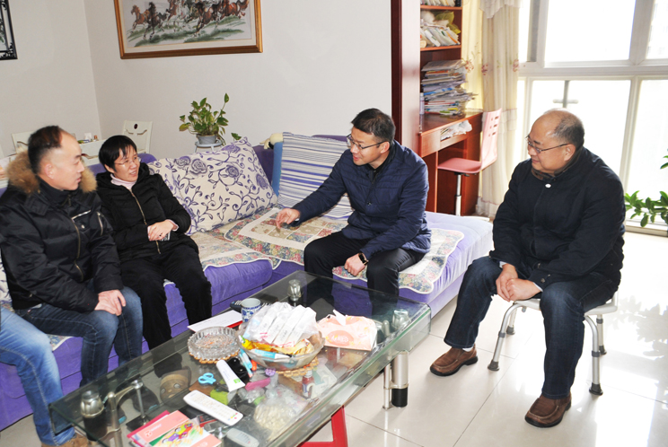 1月10日,总经理兰玉贞和机车分厂相关领导来到困难职工魏开建家中走访慰问。兰玉贞关切地询问魏开建一家的生活、工作和爱人的就医情况以及女儿的学习情况,鼓励他们克服困难,树立信心,积极治疗,争取早日康复,勉励魏开建的女儿好好学习、快乐成长。
