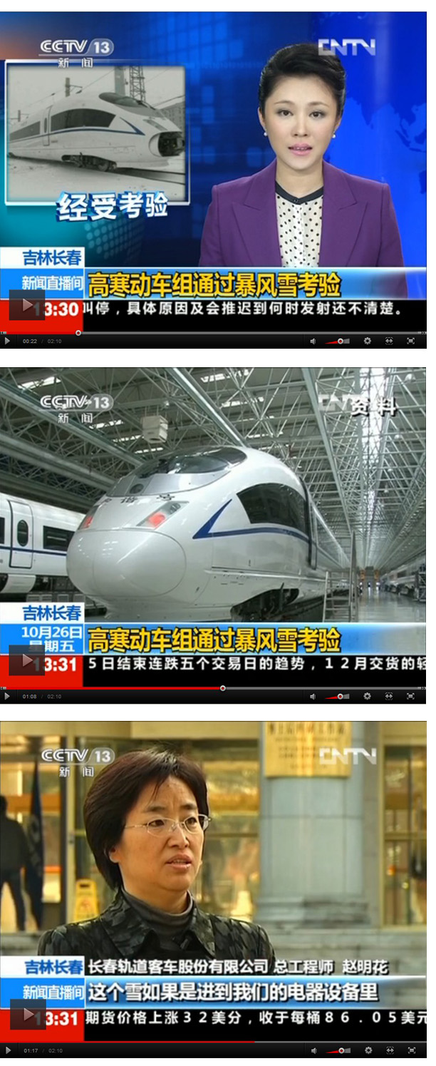 【正文】吉林、辽宁等地在10月22日迎来入冬首场暴风雪,其中吉林省长春市最大积雪深度为11.7厘米,达到暴雪级别。风雪中,CRH380B型高寒动车组,以每小时300公里的时速在哈大线上进行了试验。CRH380B型高寒动车组专为哈大高铁打造,能在零下40℃至零上40℃的环境中运行,是目前国内惟一能从海南岛南北贯穿,直抵“冰城”哈尔滨的高速动车组。不过,在此之前,对于尚未真正经历过暴风雪考验的这款高寒动车,工程师还是为它捏把汗。