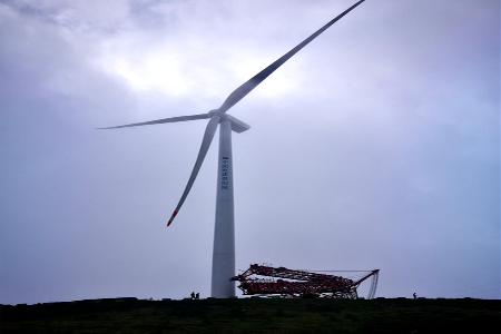 10月19日17时30分,随着“砰,砰”两声清脆的合闸声传来,风电事业部首台WT2200D131H90风力发电机组,在贵州纳雍县大滥坝风场成功并网发电。