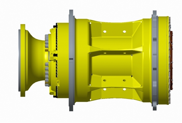 产品概述:G70010机械式终传动集成了传动、行驻车制动功能,传动形式采用NGW一级行星传动,制动为双活塞的行驻车一体式制动器,是由中车戚墅堰所设计制造的百吨级以下小吨位机械式终传动产品,匹配90吨级机械传动矿用自卸车,目前在样机试制阶段。