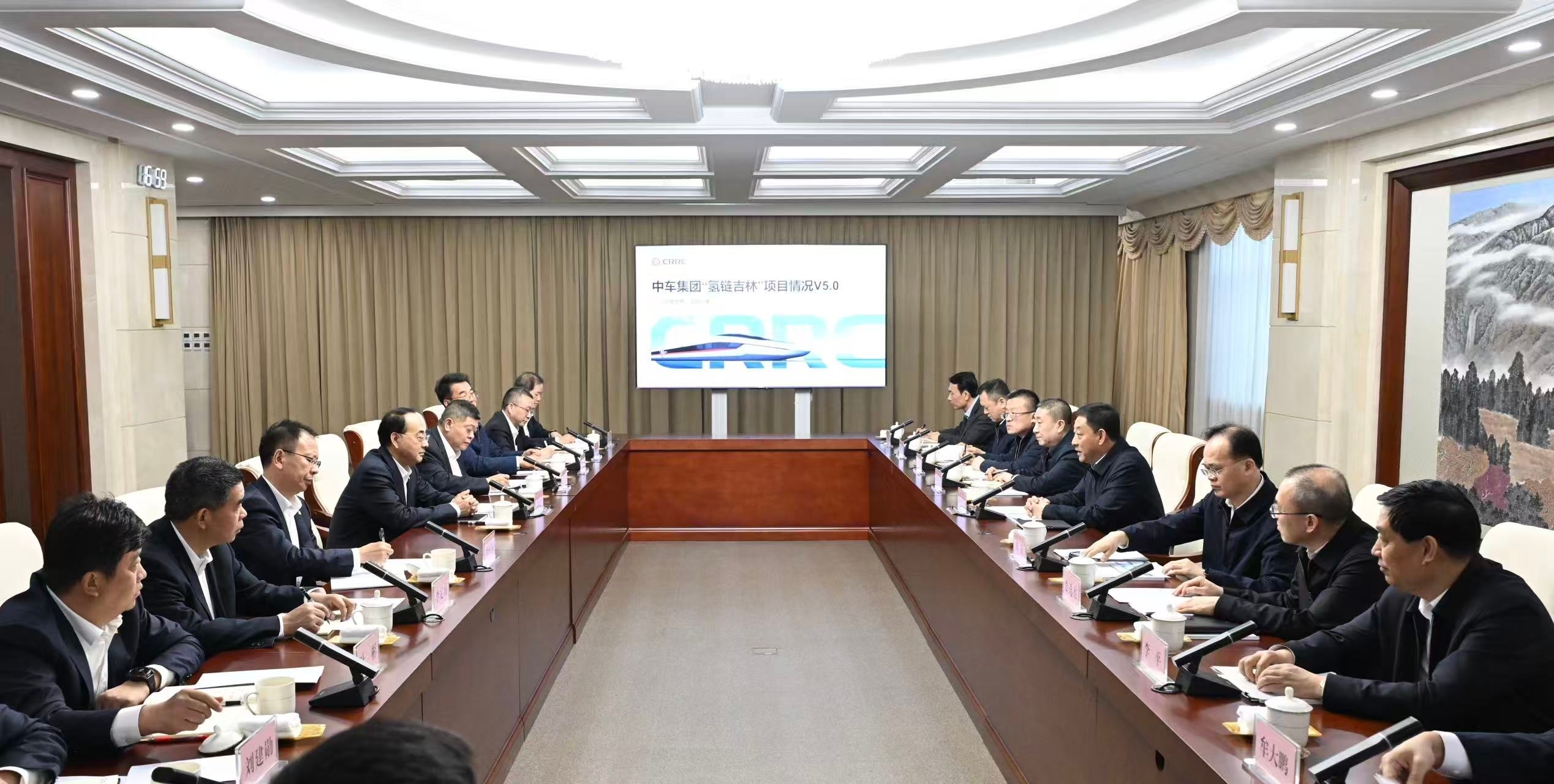 胡玉亭首先代表吉林省委、省政府向孙永才一行表示欢迎。他表示,中国中车集团作为我国轨道交通制造骨干央企,多年来大力支持吉林振兴发展,政企双方持续深化,在轨道交通、装备制造、绿色能源、氢能应用等领域取得了丰硕的合作成果,希望双方结合“十五五”发展规划,围绕重点领域合作项目,研究务实可行的解决方案,创新商业模式、运营模式,找准可行性与经济性的结合点,真抓实干推动双方合作重点项目快落地、早见效。