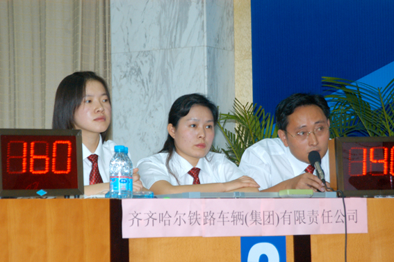 比赛共分三个赛程。第一赛程为集团所属企业内部选拔赛,共选拔三名队员参加集团公司第二赛程比赛;第二赛程为笔试,通过笔试,选拔出个人前十名优胜奖以及团体前六名;第三赛程为团体前六名口试总决赛,口试比赛采取定人笔答、定队笔答、共答、抢答和风险题五种形式。经过三个赛程紧张激烈的比赛,获团体前六名的单位是:太原厂、大连机辆公司、沈车公司、齐车公司、同车公司、兰州厂;获个人前十名的是:大连机车辆公司栾俊先、兰州厂陈育宁、太原厂杜刚、太原厂刘芳兰、齐车公司谢志清、大连机辆公司陈晓明、长客股份公司石清萍、太原厂尚兴盛、齐车公司姜玲 、牡丹江厂童铁红。