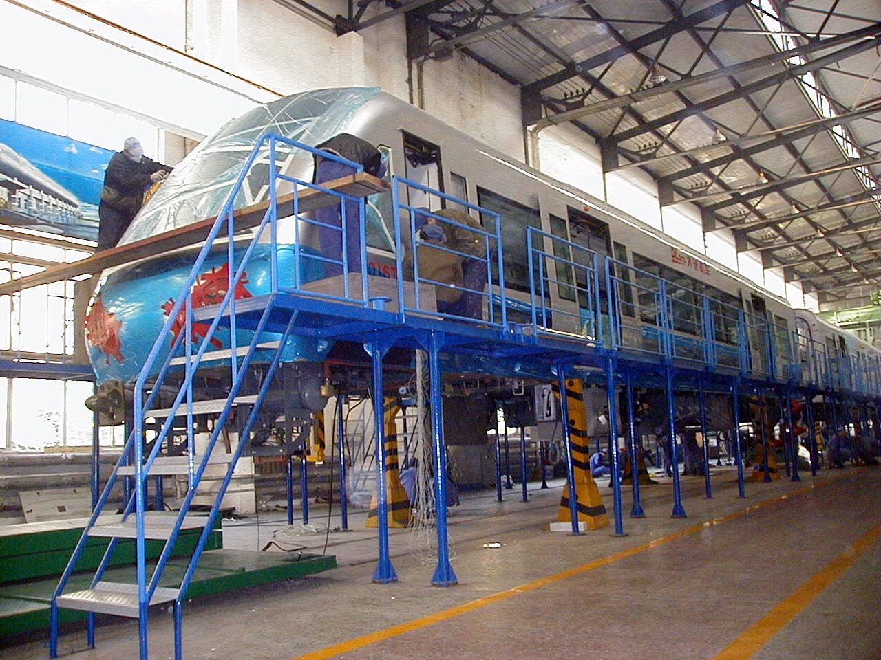 今年,大连机车车辆有限公司将新造16列城市轨道车辆,其中13列为两动两拖,3列为一动一拖。这16列车辆主要用于大连至金州城轨线路,到时,市民将乘改进后的城轨车辆往返大连与金州。图为第一城轨车辆正在紧张地生产中。