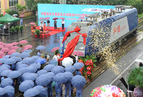 8月10日上午,铁道部在大连召开首台和谐3型电力机车二年检竣工仪式。由中国北车大连机车车辆有限公司首台试修的配属武汉铁路局江岸机务段30021号和谐3型电力机车当天在该公司竣工交付。中国北车股份有限公司总工程师孙永才参加了下线仪式。