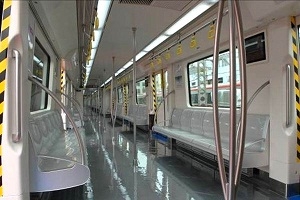 车辆采用DC750V第三轨受电,车辆编组方式为三动三拖,标准B1型车,最高运行速度80km/h。车辆外形美观、大方。车体采用轻量化不锈钢材料,表面涂装。采用H型钢板焊接构架、两系悬挂、无摇枕转向架;牵引系统由VVVF逆变器、微机控制装置和三相交流异步牵引电机组成,实现列车的牵引、再生制动和电阻制动;VVVF逆变器的功率元件采用大功率电力电子器件IGBT。列车空气制动系统采用微机控制的数字式电空制动装置;辅助供电系统采用静止型逆变器系统;列车监控系统采用TCMS网络控制,车辆具有列车自动驾驶、自动保护、自动折返等功能。每辆车每侧设有4对电动塞拉门,两个顶置式单冷空调。