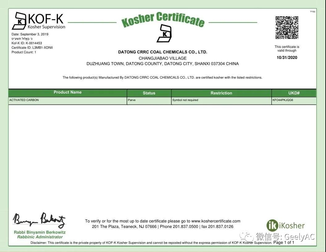 公司产品通过ISO9001:2016质量管理体系认证、NSF认证、HALAL认证和KOSHER认证。