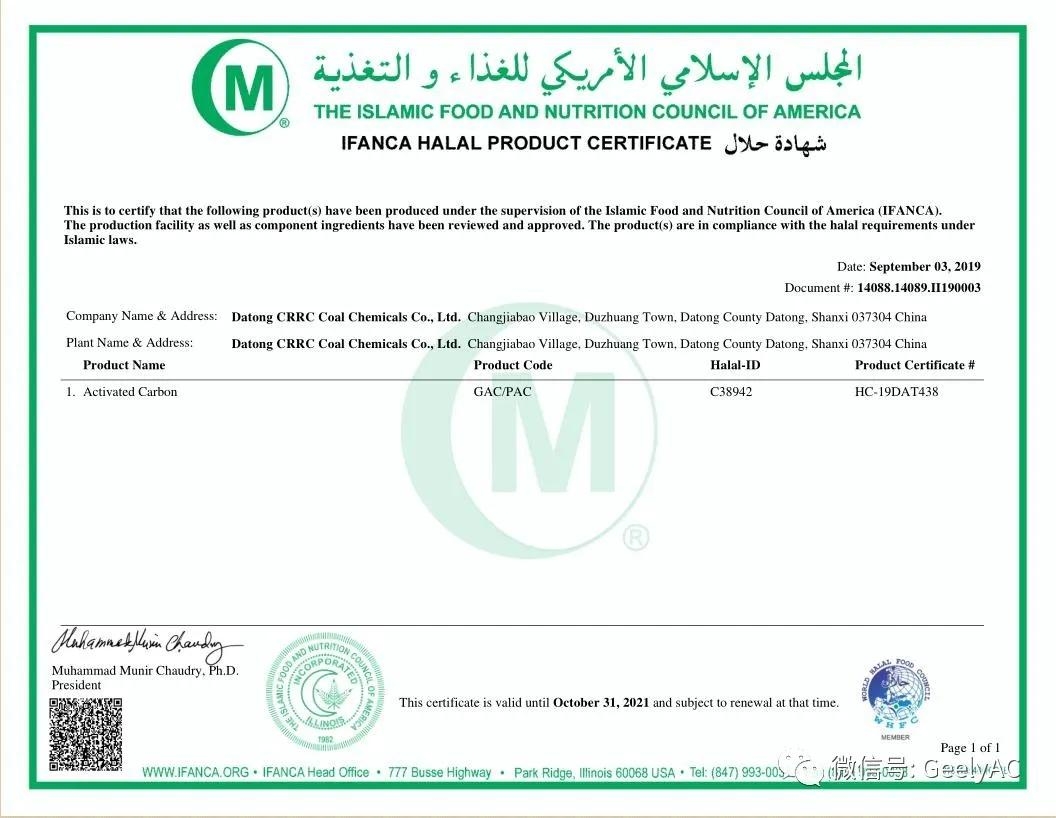 Ifanca Halal Product certificate