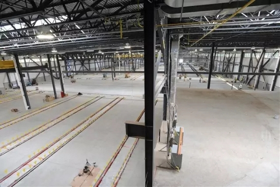 Sometime in August, workers will install a massive transfer table in the floor of the factory building, allowing CRRC to move cars left and right between sets of internal tracks, Maliszewski said. Gantry cranes are already installed overhead.