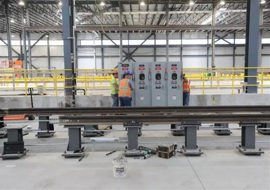 In addition to laying actual railroad tracks, they are installing electrical equipment and air handling systems, testing fire alarms, painting and putting the fixtures in the employee restrooms.