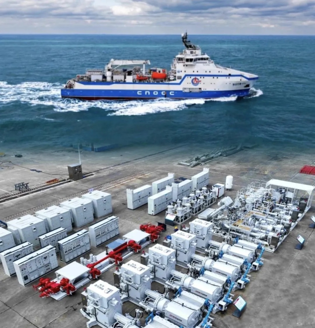 The vessel is powered by a fracturing pump drive motor developed by CRRC Yongji Electric Co., Ltd., providing core power support for offshore fracturing operations and enhancing China’s deep-sea oil and gas development capabilities.