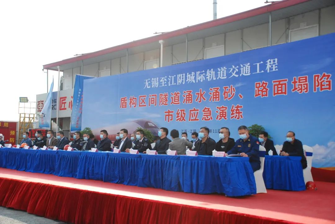 江阴市副市长张国兴、无锡地铁集团董事局主席陆春晓,无锡市安委办、江阴市应急管理局、无锡市住建局、无锡市轨道办、江阴市交通运输局、无锡地铁集团、无锡市建设工程管理服务中心、江阴市公用事业局、江阴市消防救援大队、江阴市卫健委、要塞派出所、交警大队南闸中队、江南水务、天力燃气、中车建工、锡澄中车以及施工、监理、第三方监测、专业抢险队等参建单位出席了本次现场演练活动,公司副总经理冀文有亲临演练现场。