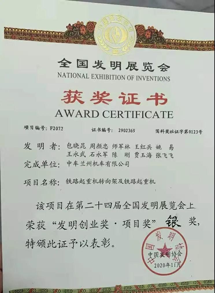 2020年11月21日上午,第二十四届全国发明展览会—“一带一路”暨金砖国家技能发展与技术创新大赛,在广东佛山潭洲国际会展中心圆满落幕。中车兰州公司参展的2个项目获得大奖。其中,“铁路起重机转向架及铁路起重机”项目斩获大会“发明创业奖·银奖”,“基础环打磨平台”项目获得大会“发明创业奖·铜奖”。