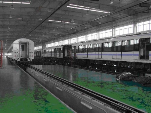 车辆静调厂房,建有5条调车道,可提供DC750V,DC1500V,AC25000V的供电电压.