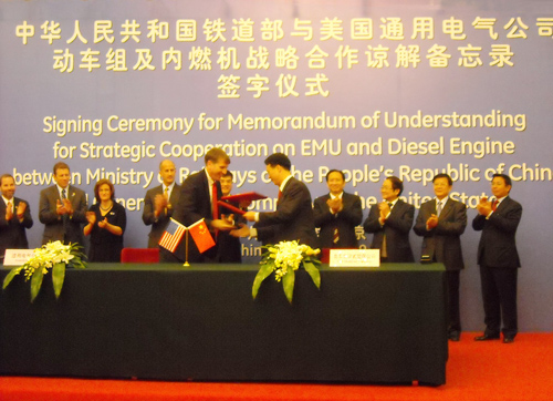 公司与通用电气(GE)旗下GE运输系统集团17日在北京共同宣布,双方将建立合资企业,在中国开发、制造系列机车柴油发动机并提供服务,以及向其它新兴市场提供出口。 合资企业总投资额为九千万美元,南车戚墅堰公司和GE分别拥有合资企业50%的股份。 合资企业预计在2011年下半年启动,业务包括柴油发动机动力组和涡轮增压器的组装,测试,售后维修服务和大修。在合资企业进入第二运营阶段后,将对柴油发动机整机进行组装,测试,售后维修服务和大修。