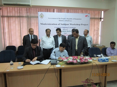 11月21日下午,公司与孟加拉铁道部关于赛义德布尔铁路工厂改造项目的签约仪式在孟加拉铁道部举行。公司副总经理陈剑鹏、孟加拉铁道部副总经理及各项目经理出席了此次签约仪式。