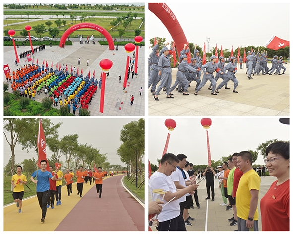 初夏的滹沱河畔,风景宜人、鸟语花香。6月12日清晨,蒙元文化民俗广场上,印有“学史增信,无役不从砥砺奋进”“学史力行,创新创效卓越领先”“用长征精神坚定信心,鼓舞斗志”“以优异成绩深情献礼建党百年”“凝聚共识 众志成城 喜迎公司党代会召开”等巨幅标语悬挂在空飘球下,大红拱门在蓝天白云绿草鲜花的衬托下更显夺目。齐车集团石家庄公司“庆祝建党100周年 走好新时代长征路”员工健步走比赛在这里热闹举办。党委书记、董事长王华,总经理张建武等公司领导,与来自各分会的14支代表队近300名员工一同参加了活动。党委副书记、纪委书记、工会主席陈伟京主持比赛仪式。