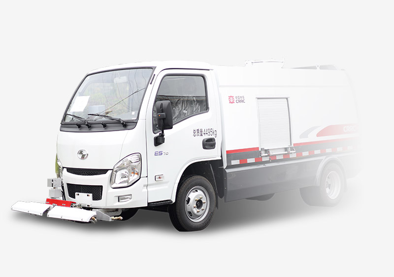 车头装有点喷装置,喷出柱状高压水柱,可将车辆前方大块垃圾冲洗干净。