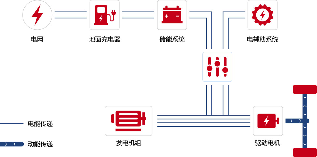 CRRC TIMES ELECTRIC VEHICLE CO., LTD. adopts self-developed ISG motor and control system to realize pure electric start, parallel or direct drive mode operation in medium and high speed working conditions and series replenishment mode operation in low speed condition, reasonably optimize engine performance and improve efficiency. It is suitable for medium-sized and bigger cities’ urban main lines, and efficiently handles operational conditions such as large passenger flow and road congestion, achieving operational efficiency and cost balance.