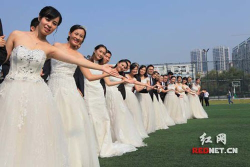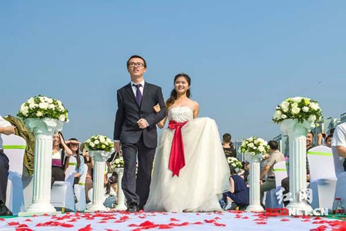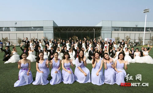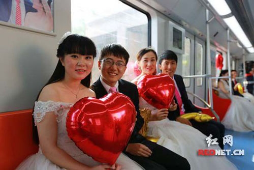 出席此次集体婚礼的中国中车株机公司党委书记傅成骏介绍,在24对新人中,11对都是公司员工,另外13对中有一方来自中车株机。“他们来自项目管理、售后服务或制造一线,因为工作中交往的志同道合而喜结伉俪。”