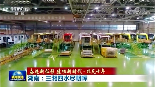 CCTV1《新闻联播》在《湖南:三湘四水尽朝晖》报道中,关注株洲轨道交通装备产业集群发展,镜头定格中车株机——在城轨事业部总成车间,一列列城轨车辆、动车组整齐排列,整装待发。同时,《新闻联播》在推介西藏发展中4次播出高原“复兴号”驰骋的镜头,并指出:拉萨、林芝等城市“三小时经济圈”初步形成……纵横交错的立体交通网,让“世界屋脊”不再遥远。