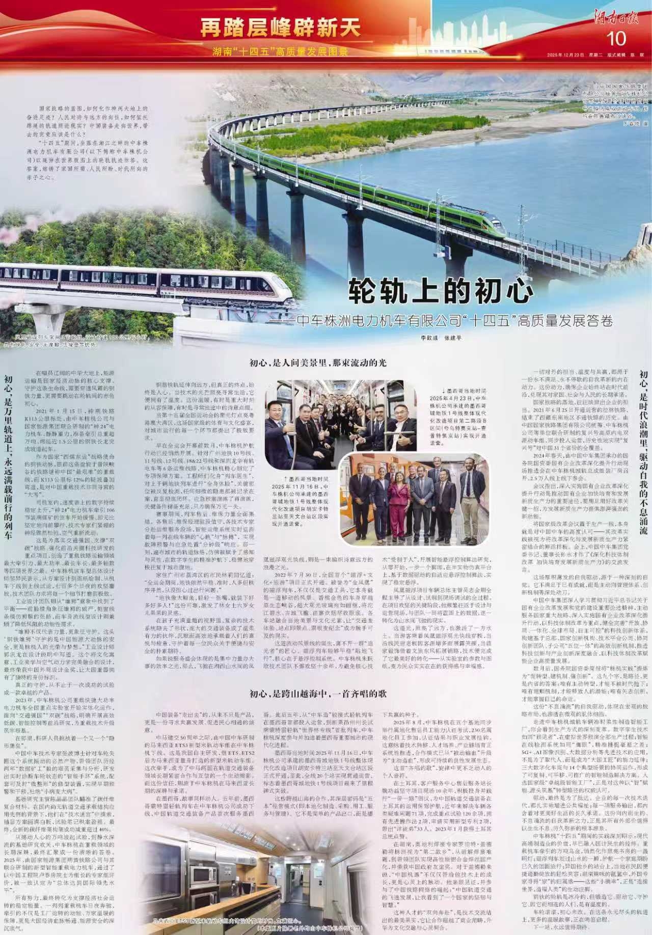 “十四五”期间,坐落在湘江之畔的中车株洲电力机车有限公司(以下简称中车株机公司)以延伸在世界版图上的轮轨轨迹作答。这答案,熔铸了家国所需、人民所盼、时代所向的赤子之心。