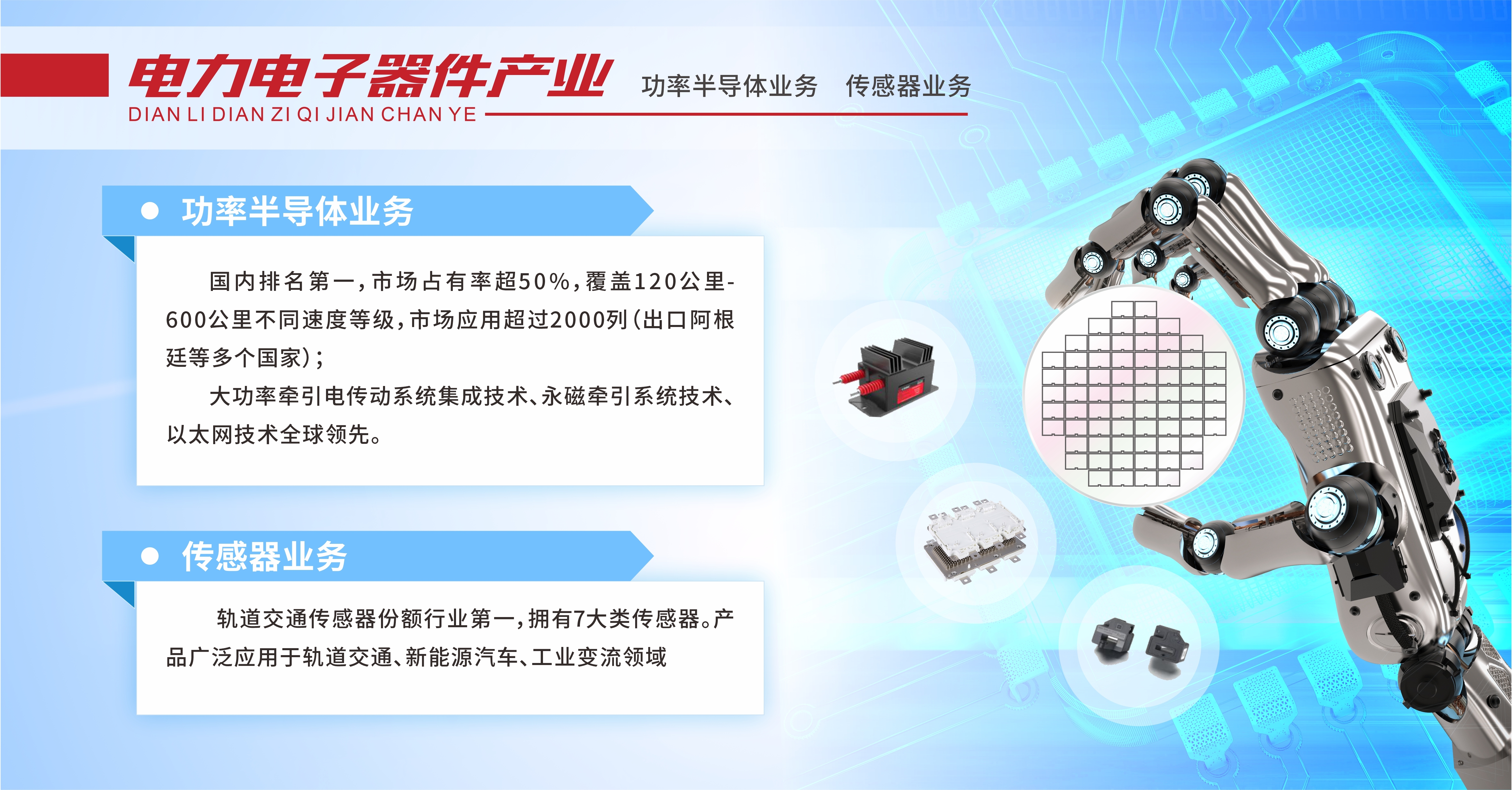 中车株洲所坚持创新驱动发展,积极贯彻“科技强国”、“交通强国”、“3060碳达峰碳中和”、“海洋强国”等国家战略,立足交通和能源领域,积淀了“器件、材料、算法”三大内核技术,打造了轨道交通、新材料、新能源、电力电子器件、汽车电驱、海工装备、工业电气、智轨快运系统等八大产业板块。公司承担了大功率IGBT研制等“卡脖子”技术公关,自主大功率半导体器件广泛应用于国家电网、轨道交通、新能源汽车等重要工业领域,有力支撑产业链供应链自主可控。