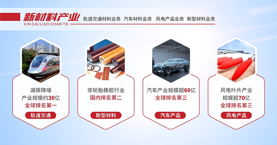 公司新材料产业包含轨道交通材料、汽车材料、风电产品、新型材料等业务。 |